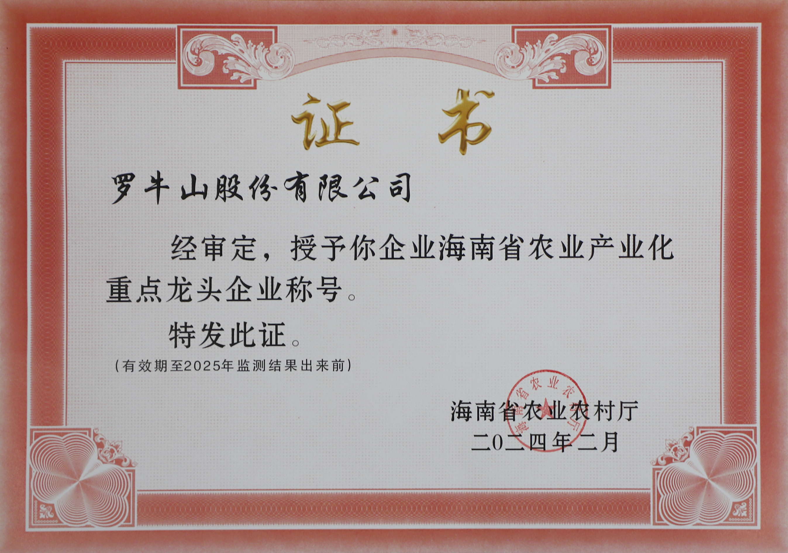 近日,海南省農業(yè)農村廳關于公布 2022 年度海南省農業(yè)產業(yè)化重點龍頭企業(yè)認定和運行監(jiān)測結果的通知,羅牛山股份有限公司被授予海南省農業(yè)產業(yè)化重點龍頭企業(yè)稱號。