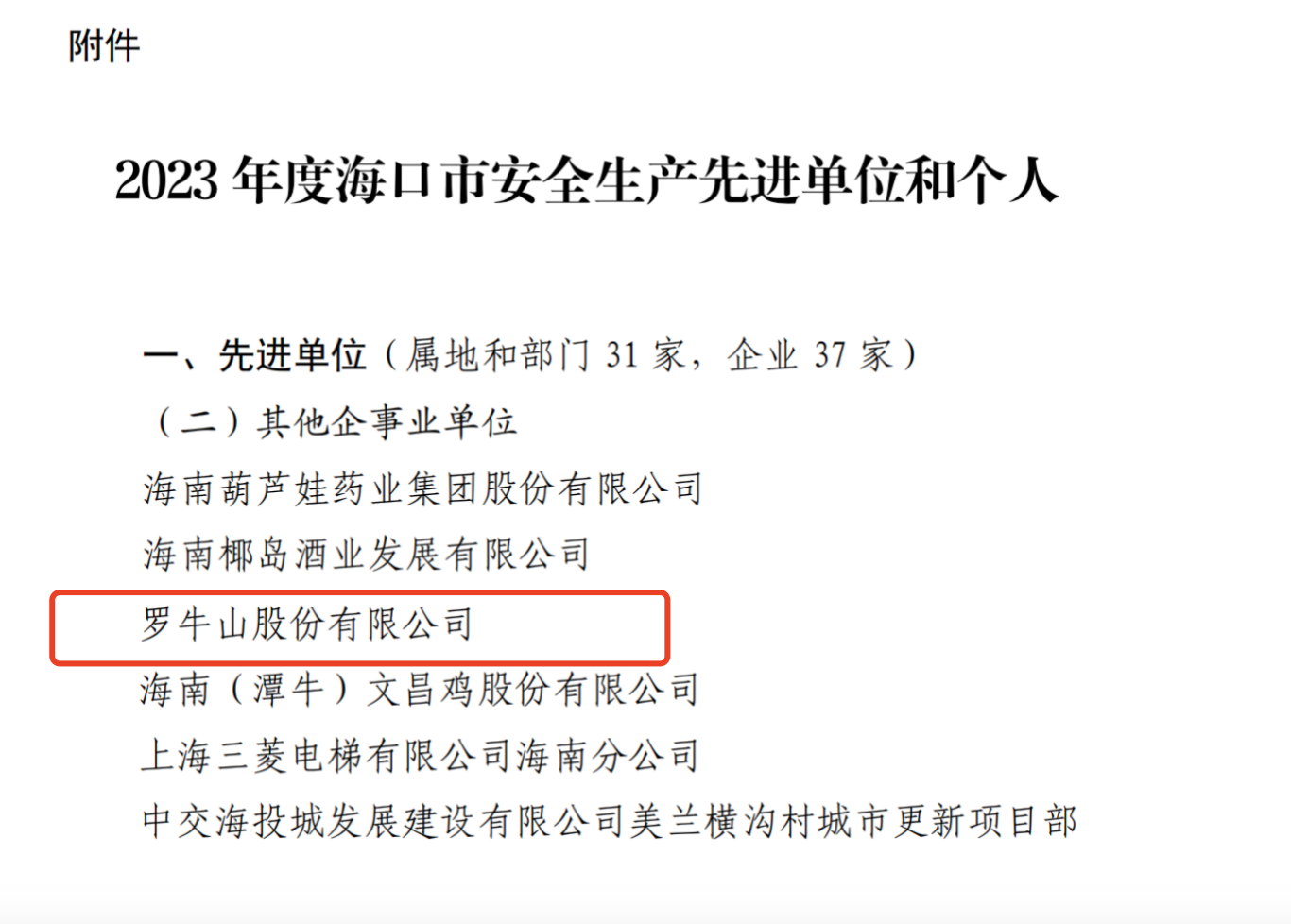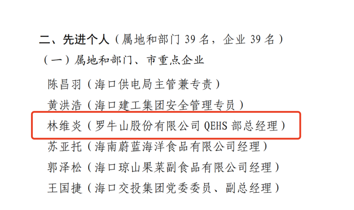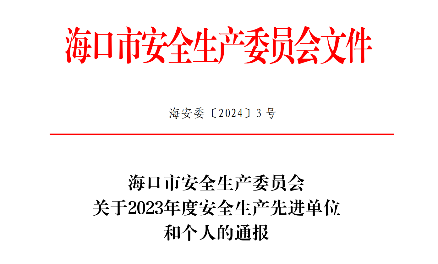 ??谑邪踩a委員會公布了2023年度安全生產先進單位和先進個人的評選結果,股份公司榮獲“2023年度??谑邪踩a先進單位”稱號,公司QEHS管理部林維炎獲“2023年度海口市安全生產先進個人”殊榮。
