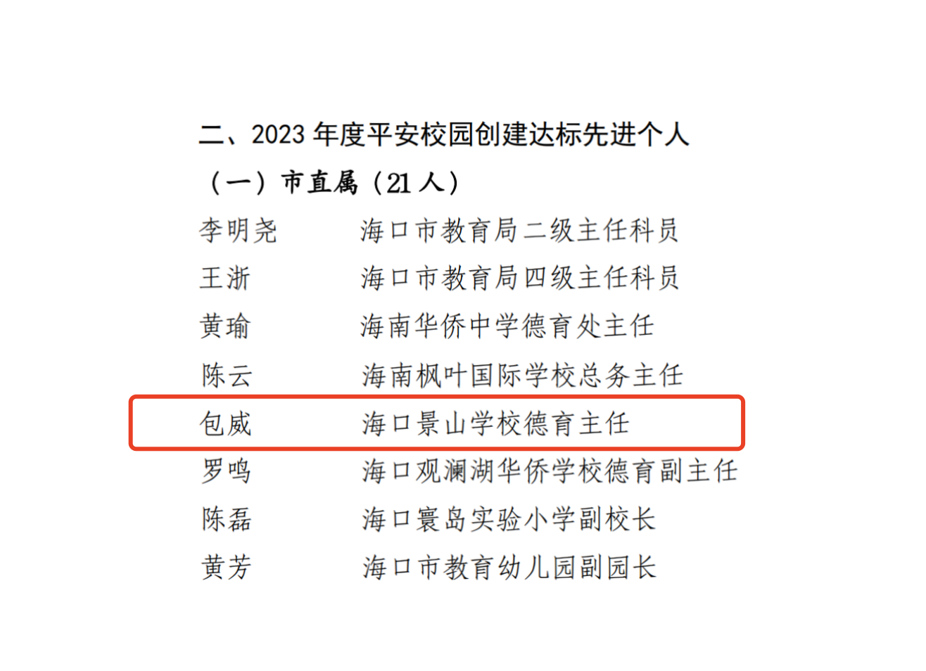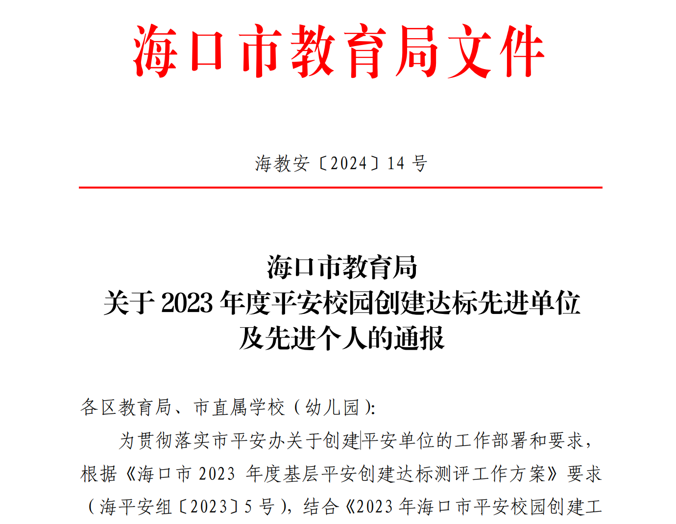 此外,??诰吧綄W校也榮獲了“2023年度??谑衅桨步ㄔO先進單位”稱號,而該校德育處包威老師則榮獲“??谑衅桨残@建設先進個人”殊榮。景山學校一直以來注重校園安全建設,加強師生安全教育和培訓,積極營造安全、和諧的校園環(huán)境,為學生的健康成長提供了有力保障。