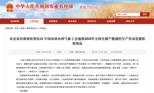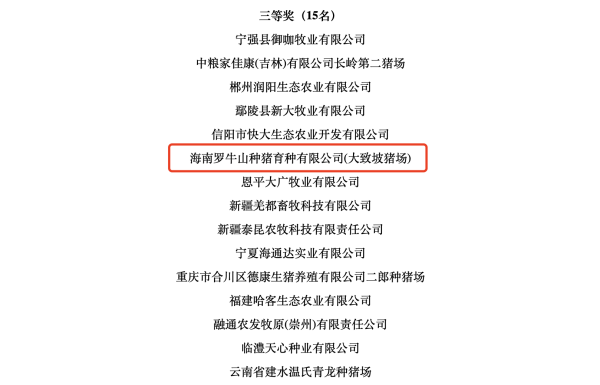 近日,農(nóng)業(yè)農(nóng)村部畜牧獸醫(yī)局與中國農(nóng)林水利氣象工會共同發(fā)布了2024年全國生豬產(chǎn)能調(diào)控生產(chǎn)勞動競賽的獲獎名單,海南羅牛山種豬育種有限公司(大致坡豬場)憑借在生產(chǎn)效率、技術(shù)裝備、職工素質(zhì)及管理水平等方面的卓越表現(xiàn),榮獲三等獎,成為海南省唯一在此次競賽中獲得此榮譽(yù)的國家級產(chǎn)能調(diào)控基地,彰顯了羅牛山生豬產(chǎn)業(yè)的現(xiàn)代化發(fā)展實力。
