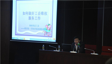 為進(jìn)一步增強工會干部的法律意識,根據(jù)《??谑?017普法依法治理工作要點》和《2017年海南省工會100場“法律大講堂”活動實施方案》的通知,結(jié)合??谑锌偣甓裙ぷ饕c,2017年12月12日下午,股份公司工會特邀請省總工會法律保障部主任、高級勞動關(guān)系協(xié)調(diào)師周才欽為大家授課,股份公司和各下屬單位分管工會、法務(wù)、人資共60余人參加了學(xué)習(xí)培訓(xùn)。