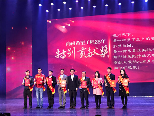 2018年1月12日晚,以“愛讓海南更美好”為主題、紀(jì)念海南希望工程實(shí)施25周年頒獎(jiǎng)晚會(huì)在海南大學(xué)思源學(xué)堂隆重舉行。晚會(huì)在一首音詩畫《感動(dòng)海南的愛》的娓娓道來中啟幕,一張張稚嫩的面龐,一雙雙渴望求知的眼睛,一幕幕感人的歷史畫卷,映入眼簾里,更烙印腦海中。25年來,海南省希望工程匯聚千萬愛心,溫暖千家萬戶,創(chuàng)造了經(jīng)濟(jì)小省做大公益的輝煌業(yè)績。