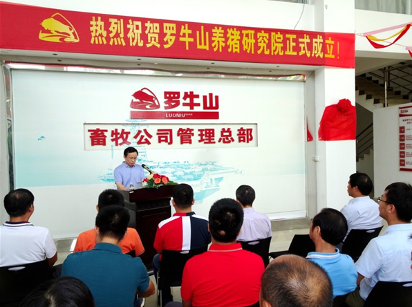 李再華董事長(zhǎng)宣布羅牛山養(yǎng)豬研究院正式成立