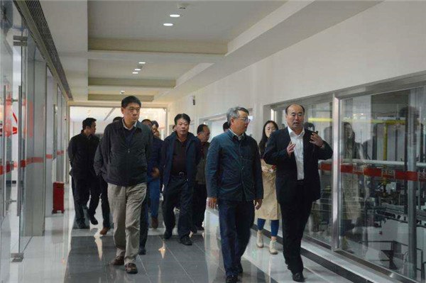 王楓引導(dǎo)調(diào)研組一行參觀生產(chǎn)線