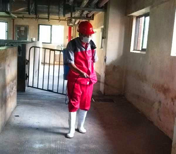 宋慶樂(lè)正在對(duì)車(chē)間進(jìn)行消毒