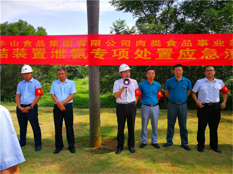 6月26—27日,食品集團(tuán)在桂林洋產(chǎn)業(yè)園組織了兩場(chǎng)重大危險(xiǎn)源氨泄漏人員應(yīng)急疏散及現(xiàn)場(chǎng)應(yīng)急處置演練活動(dòng)。海南省市場(chǎng)監(jiān)督管理局特種設(shè)備監(jiān)察局局長(zhǎng)林詩(shī)光、調(diào)研員劉耀文、??谑惺袌?chǎng)監(jiān)督管理局特設(shè)科科長(zhǎng)李勝華、桂林洋安委辦主任楊家堤,以及股份公司總工程師柳旺元觀摩了此次演練活動(dòng)。