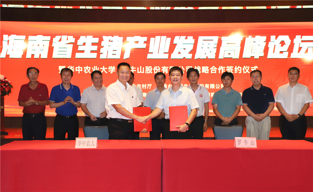 上午9:00,海南省生豬產業(yè)發(fā)展高峰論壇在海南迎賓館多功能廳華彩開幕!在莫正群副廳長、陳煥春院士、華中農業(yè)大學黨委書記高翅教授、羅牛山股份有限公司徐自力董事長及相關政府、學校、公司領導等與會者的見證下,華中農業(yè)大學-羅牛山股份有限公司戰(zhàn)略合作簽約儀式隆重舉行。華中農業(yè)大學動科動醫(yī)學院黨委書記劉興斌與羅牛山股份有限公司總裁鐘金雄作為雙方代表簽訂戰(zhàn)略合作協議。