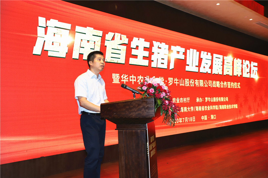 2020年7月18日,海南省生豬產業(yè)發(fā)展高峰論壇暨華中農業(yè)大學、羅牛山股份有限公司戰(zhàn)略合作簽約儀式在海南迎賓館隆重舉行。海南省農業(yè)農村廳副廳長莫正群等省市政府領導,中國工程院院士陳煥春,華中農業(yè)大學、中國熱帶農業(yè)科學院、海南大學、海南省農業(yè)科學院、海南職業(yè)技術學院等學校領導及專家學者,以及來自省內的養(yǎng)豬業(yè)精英人士、企業(yè)家,兩百余人集聚于此,共襄盛會,見證行業(yè)新力量,聚焦行業(yè)新熱點,謀劃行業(yè)新遠景,為海南自貿區(qū)(港)建設再添新能量。