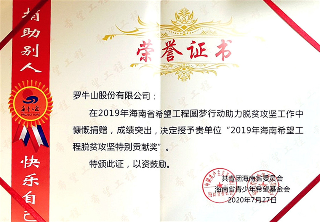 7月27日下午,2020年海南省希望工程圓夢行動(dòng)表彰暨啟動(dòng)儀式在??谂e行。儀式現(xiàn)場,羅牛山股份有限公司被授予“2019年度海南省希望工程脫貧攻堅(jiān)特別貢獻(xiàn)獎(jiǎng)”。同時(shí),為了支持2020年海南省希望工程脫貧攻堅(jiān)工作,幫助家庭貧困學(xué)子解決上大學(xué)難的實(shí)際問題,羅牛山股份有限公司現(xiàn)場捐贈(zèng)65萬元,持續(xù)助力海南省希望工程圓夢行動(dòng)這一惠民工程。