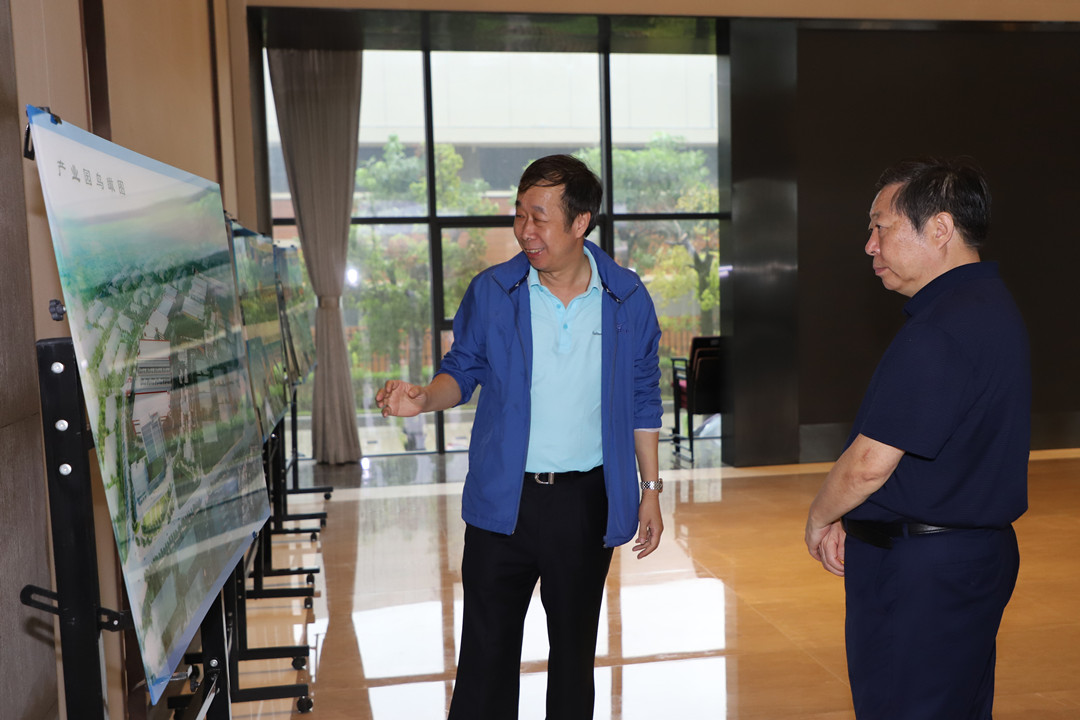 徐自力董事長向李英杰副主席介紹園區(qū)功能布局、發(fā)展規(guī)模等情況