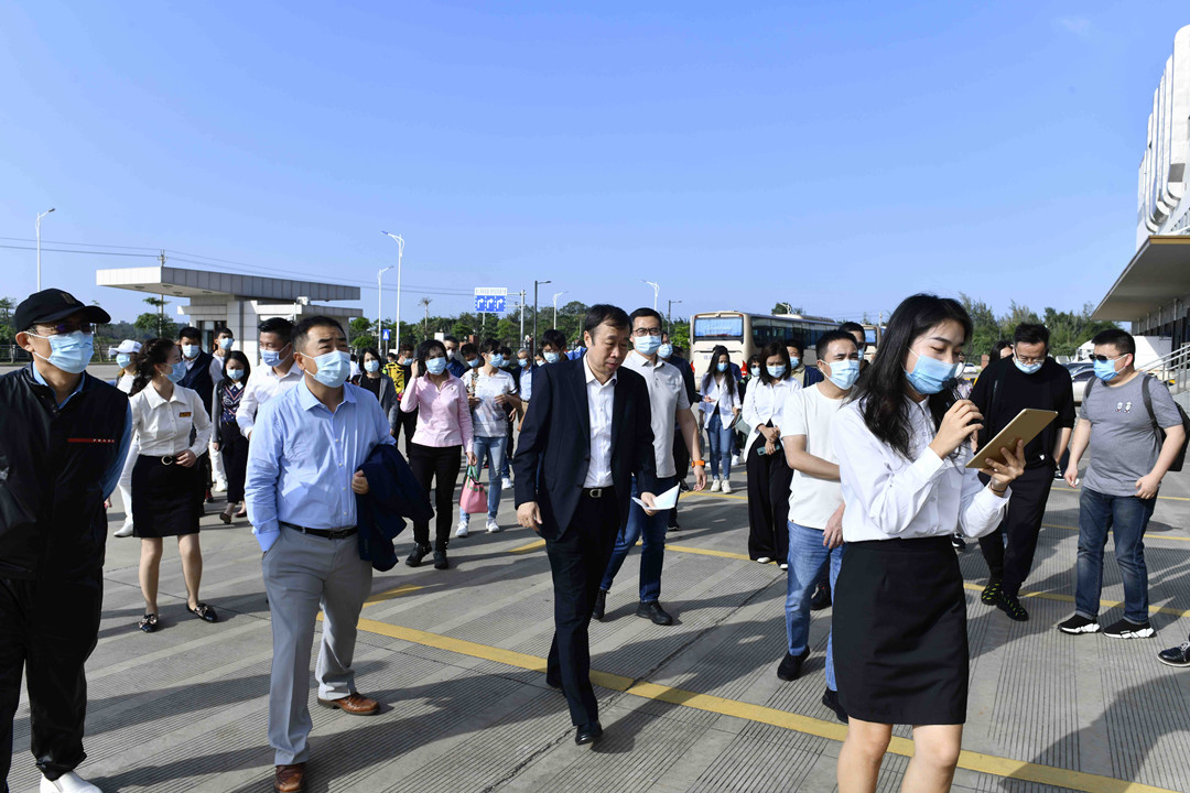 圖說(shuō):DBA項(xiàng)目六期師生參觀羅牛山冷鏈物流園。師生一行首先參觀了羅牛山冷鏈物流園2號(hào)庫(kù),隨后乘車環(huán)繞3、4、5號(hào)庫(kù),聽取了講解員關(guān)于冷鏈物流園吞吐量、合作企業(yè)數(shù)量、年產(chǎn)值等具體指標(biāo)的介紹,對(duì)冷鏈物流園建設(shè)與經(jīng)營(yíng)規(guī)模有了更全面的了解。