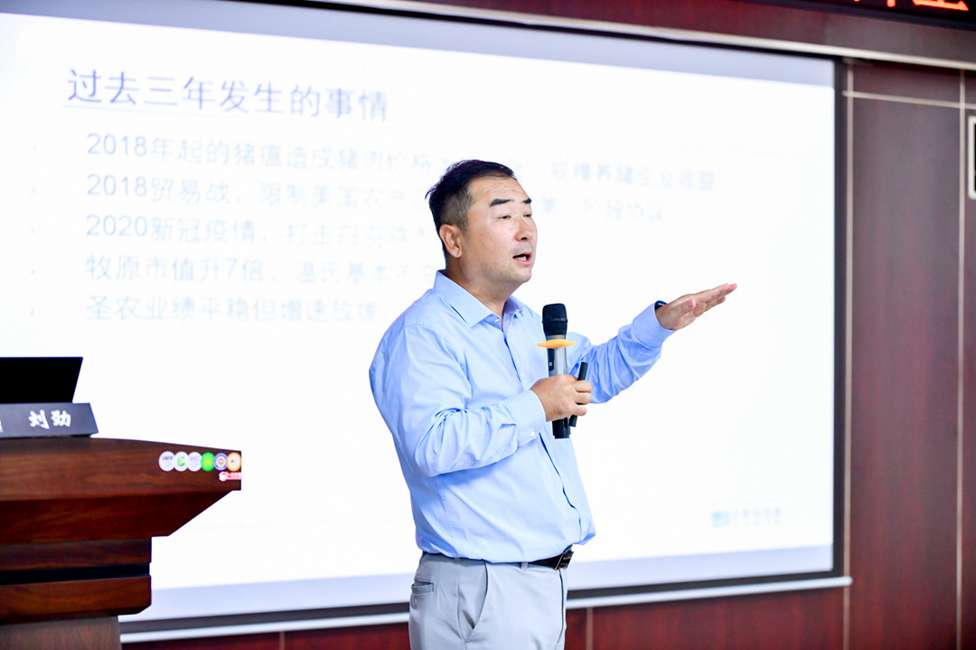 圖說(shuō):DBA項(xiàng)目副院長(zhǎng)劉勁為企業(yè)家學(xué)員作《農(nóng)業(yè)專題行業(yè)研究》課程分享。