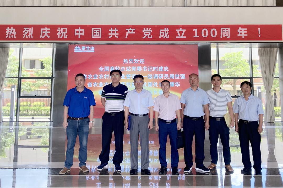 全國畜牧總站黨委書記時(shí)建忠(左三)到訪羅牛山產(chǎn)業(yè)園