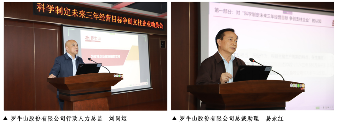 12月1日,羅牛山股份有限公司在羅牛山產(chǎn)業(yè)園電商大廈四樓會議室隆重召開科學(xué)制定未來三年經(jīng)營目標(biāo)、爭創(chuàng)支柱企業(yè)動員會。本次動員會旨在鼓勵各單位樹立主人翁意識,深入思考行業(yè)形勢、自身發(fā)展優(yōu)劣勢及發(fā)展方向,主動擔(dān)當(dāng)、積極作為,以“有為才有位”的績效觀念,科學(xué)制定未來三年經(jīng)營目標(biāo),爭創(chuàng)支柱企業(yè)。會議由股份公司財務(wù)總監(jiān)楊向雅主持,股份公司董事長徐自力、高管成員、各職能部門負(fù)責(zé)人及股份公司下屬各分、子公司經(jīng)營班子成員全程參會。