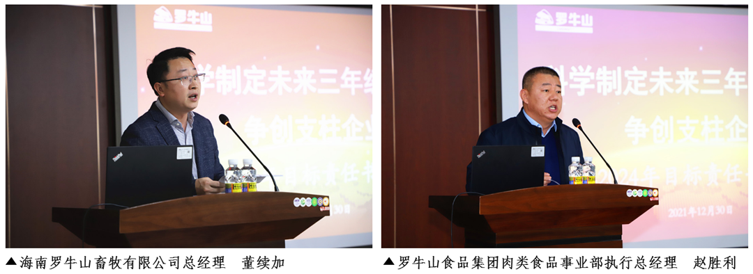 12月30日,羅牛山股份有限公司2022-2024年目標責任書簽訂儀式在羅牛山產業(yè)園電商大廈四樓會議室隆重舉行。本次大會旨在明確公司2022-2024年經營目標,落實主體責任,充分發(fā)揮目標的激勵和約束作用,鼓勵各單位爭創(chuàng)支柱企業(yè),助力公司實現(xiàn)新一輪跨越式發(fā)展。股份公司董事長徐自力、高管成員、相關職能部門負責人及股份公司下屬各分、子公司負責人參會。