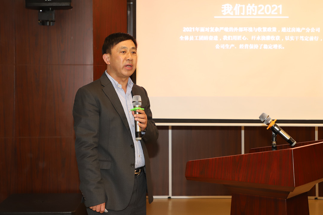 圖說:房地產(chǎn)分公司執(zhí)行總經(jīng)理曾睿首先作2021年度工作報告,并對2022年重點工作進行部署。他全面總結(jié)了2021年公司經(jīng)營情況,深入分析了房地產(chǎn)發(fā)展趨勢,他要求,學(xué)會總結(jié)、加強學(xué)習(xí)、提升軟實力是接下來工作的重中之重。他希望,所有羅牛山地產(chǎn)人在新的一年里要以結(jié)果為導(dǎo)向,用業(yè)績說話,不空談、不搞形式主義,做到目標既定,就要同心協(xié)力,步調(diào)一致,為爭創(chuàng)集團公司支柱企業(yè)不懈奮斗!