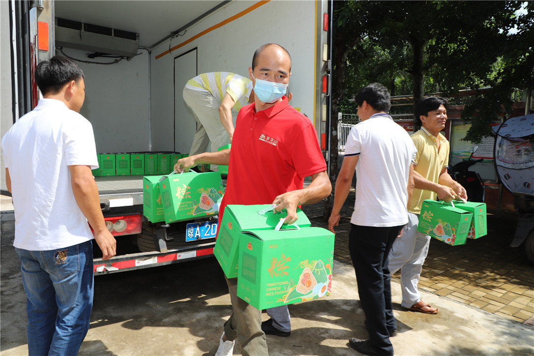 本次慰問禮品由公司精心準(zhǔn)備,所選的明星產(chǎn)品羅牛山黑豬肉蛋黃粽,自2021年推出便深受消費者喜愛,并在近兩年端午佳節(jié)熱銷全國。該產(chǎn)品精心選材,挑選了體質(zhì)結(jié)實、腿臀豐滿的黑豬,肉質(zhì)新鮮緊致,味道鮮美,配以11個小時的柴火熬煮,使粽葉,肉餡、蛋黃以及糯米四重香味完美互融,用匠心真正傳承了海南正宗的柴火粽美味。