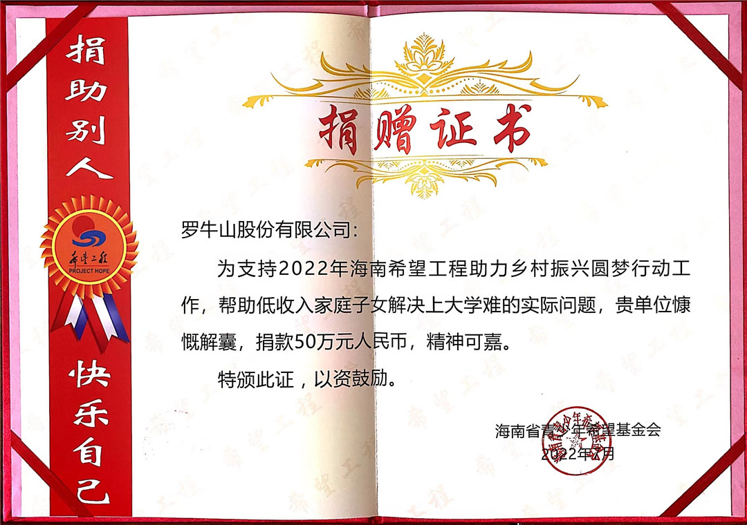 今年是海南希望工程圓夢(mèng)行動(dòng)實(shí)施的第20個(gè)年頭,未來,羅牛山將一如既往支持希望工程,助力海南公益事業(yè),以實(shí)際行動(dòng)幫助我省低收入家庭學(xué)子圓上學(xué)夢(mèng),為鄉(xiāng)村振興添磚加瓦,為海南自貿(mào)港建設(shè)貢獻(xiàn)力量。