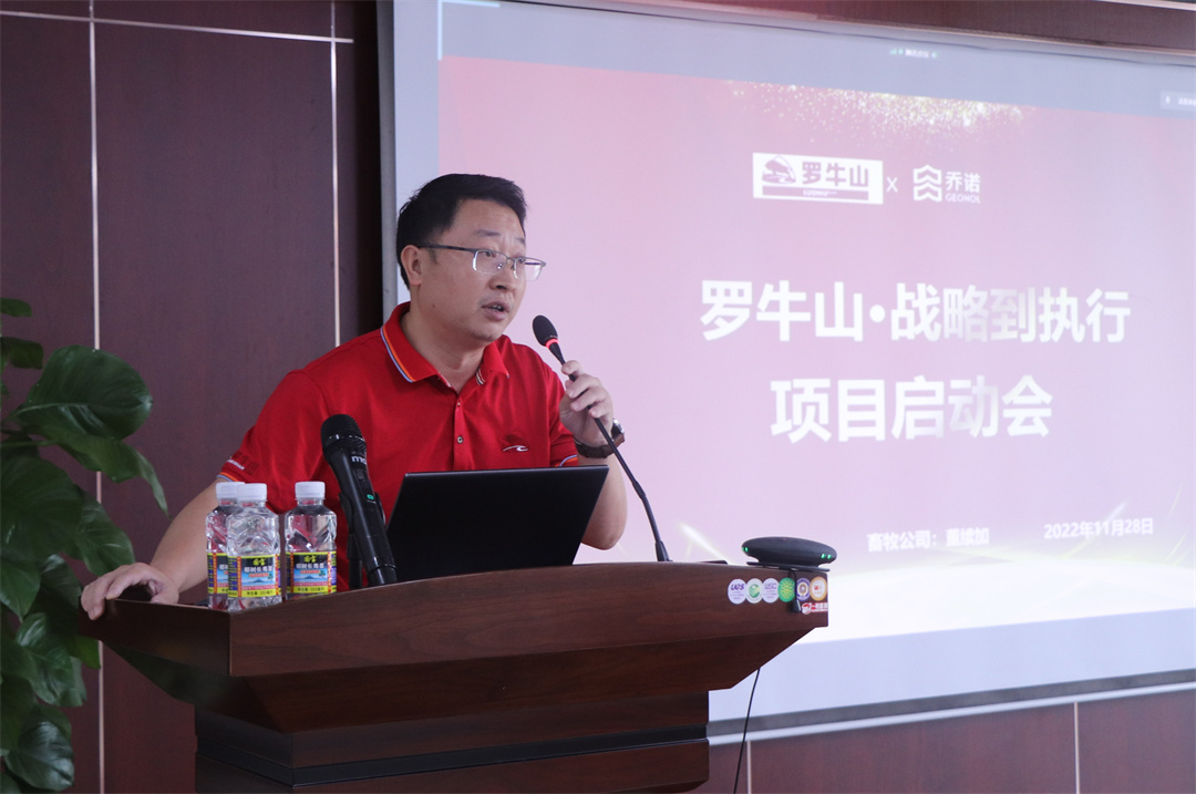 隨后,喬諾公司項目經(jīng)理蘭淼泉匯報了項目整體工作方案;畜牧公司總經(jīng)理董續(xù)加就當前戰(zhàn)略執(zhí)行存在問題、項目團隊配置、工作計劃、項目達成目標及成果進行了匯報。